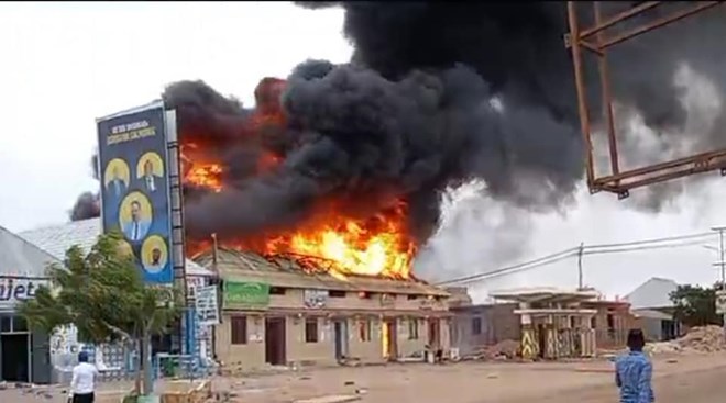 newsinsideDabkan ayaa ka dhashay kaalin Shidaal oo ku taala bartamaha magaalada Dhuusamareeb waxuuna ku faafay xaruuma kale oo ganacsi oo ka ag dhawaa kaalinta Shidaalka ee dabka ka bilawday.