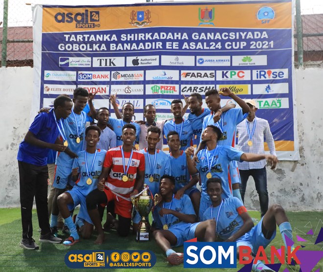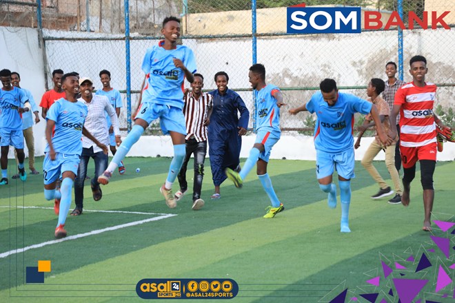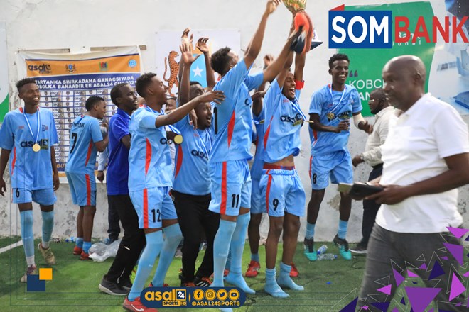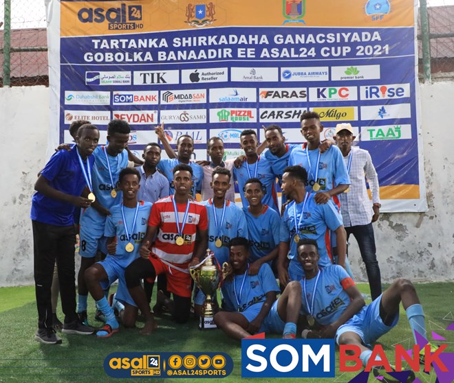 newsinsideSomBank ayaa ku guulaystay koob u soo qaban qaabiyay TV-ga Asal24sports, kadib kulan ka dhacay garoonka gaadiidka ee degmada Shangaani ee wada ciyaareen ciyaarta kama danbeysta ah kooxda Elite Hotel, waxeeyna SomBank guusha ku raacday rigoorayaal 3-2, kadib marki ay bar bar dhac ku dhamaatay waqtigi loogu tala galay ciyaarta 2-2.