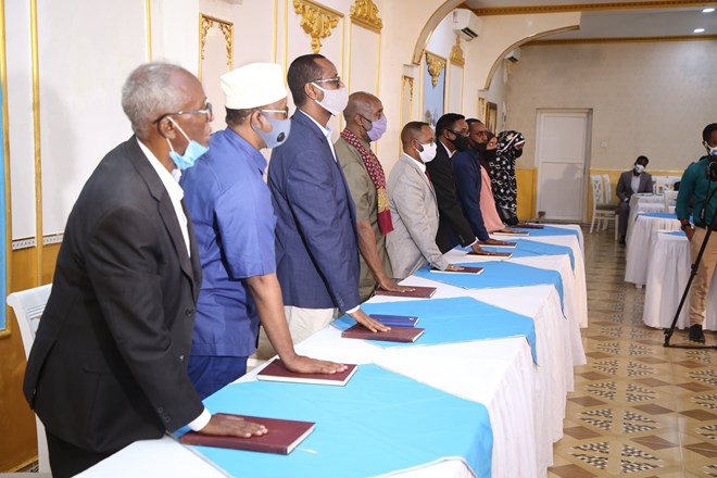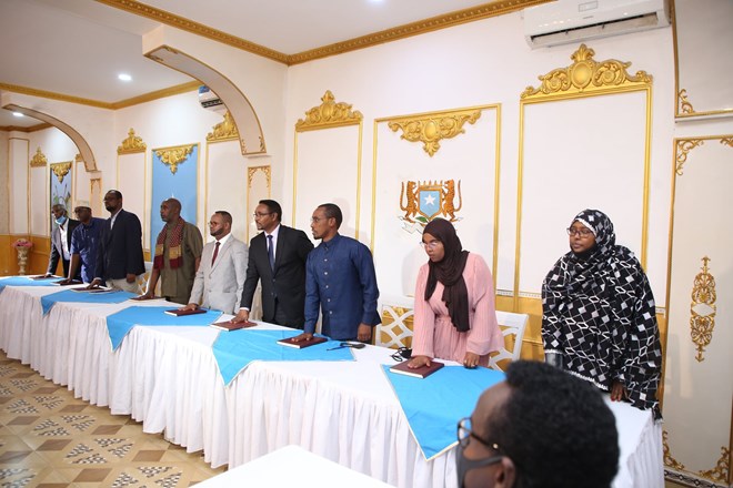 “Maanta waxaa la idiin dhaariyey masuuliyad weyn oo heer qaran ah. Waxaan idin ka sugeynaa in aad xaqiijisaan hiigsiga shacabka Soomaaliyeed ee ku aaddan adkeynta isla xisaabtanka, ilaalinta hantida shacabka iyo dabar goynta musuqmaasuqa oo dib u dhigay horumarka dalkeenna," ayuu yiri madaxweyne Farmaajo.