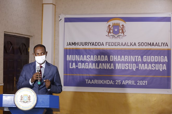 Axad, April, 25, 2021 (HOL) - Madaxweyne Farmaajo oo qeyb galay Munaasabad lagu dhaarinayay guddiga Madaxa Bannaan ee la dagaallanka Musuqmaasuqa ayaa tilmaamay in dowladda iyo shacabka Soomaaliyeed ay tallaabooyin miro-dhal ah u qaadeen dhanka hufnaanta maaliyadda, dowlad wanaagga iyo dimuqraadiyadda.