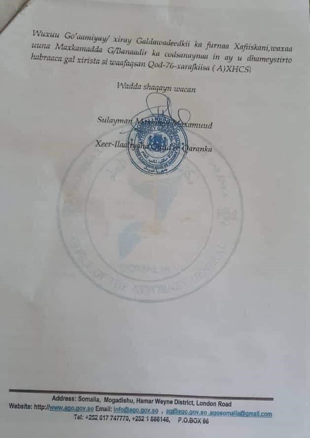 newsinsideXafiiska xeer ilaaliyaha guud oo soo saaray go'aanka lagu xiray kiiska dacwadda Janan ayaa u cuskaday Danta guud ee caddaalada laga leeyahay.