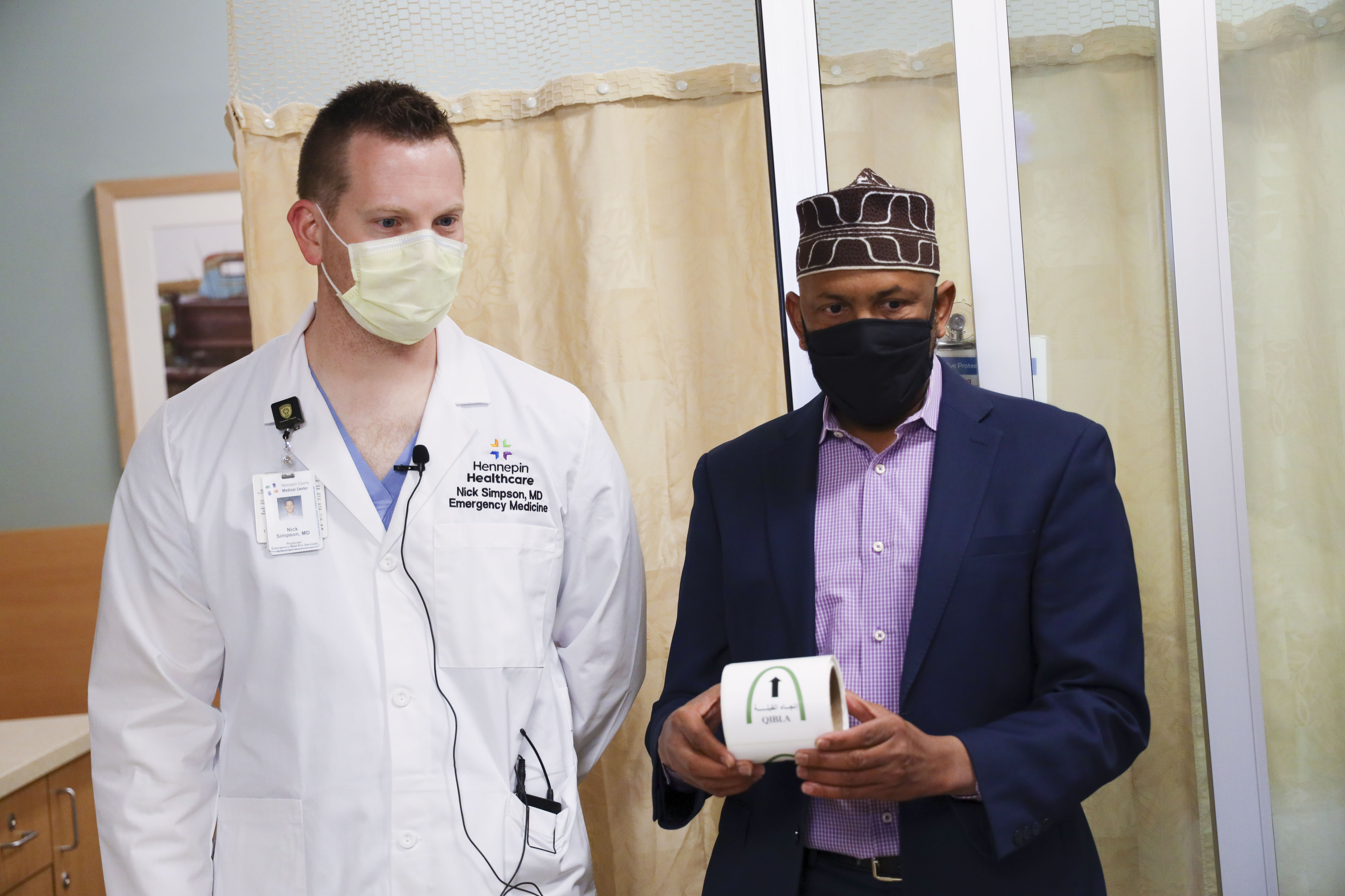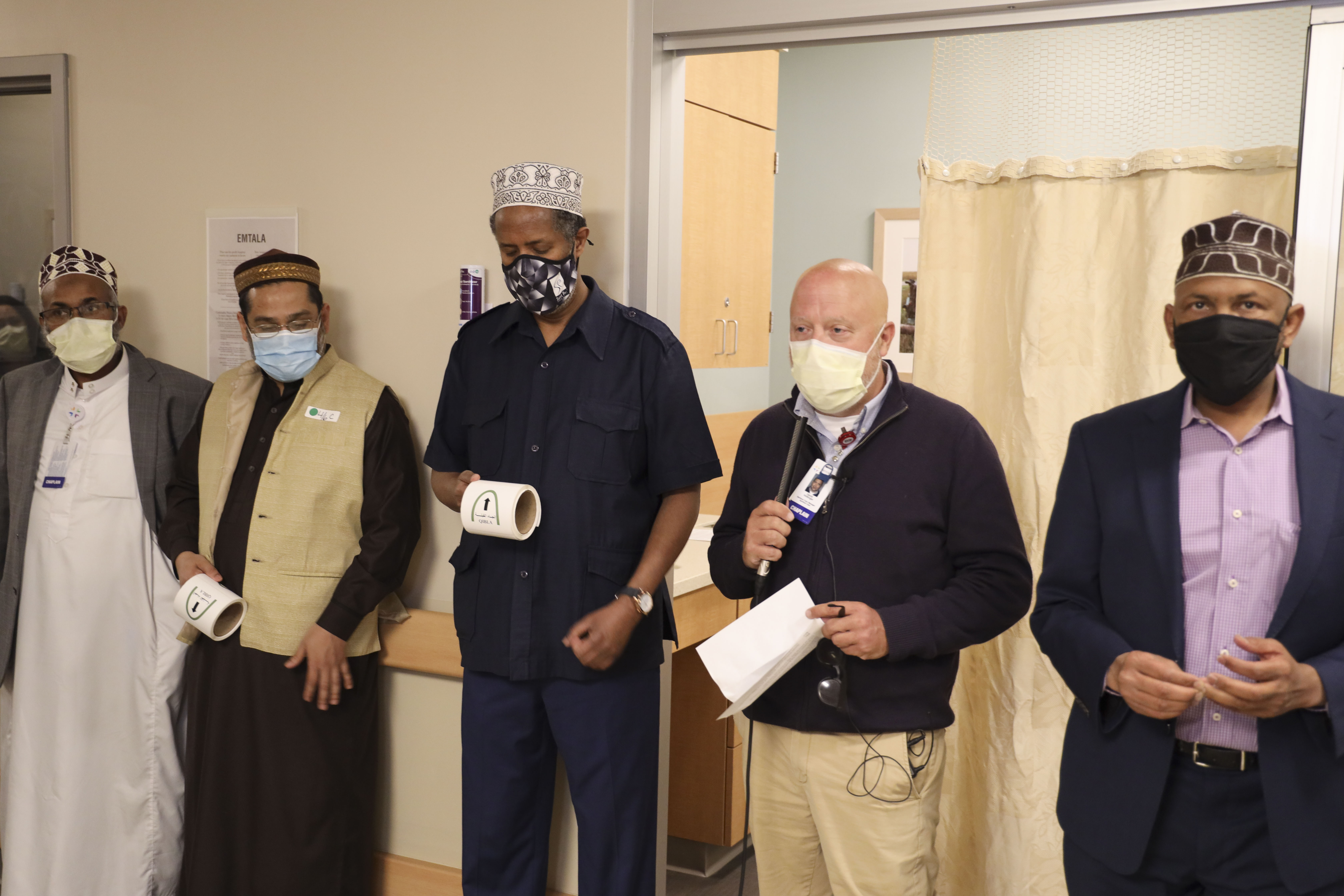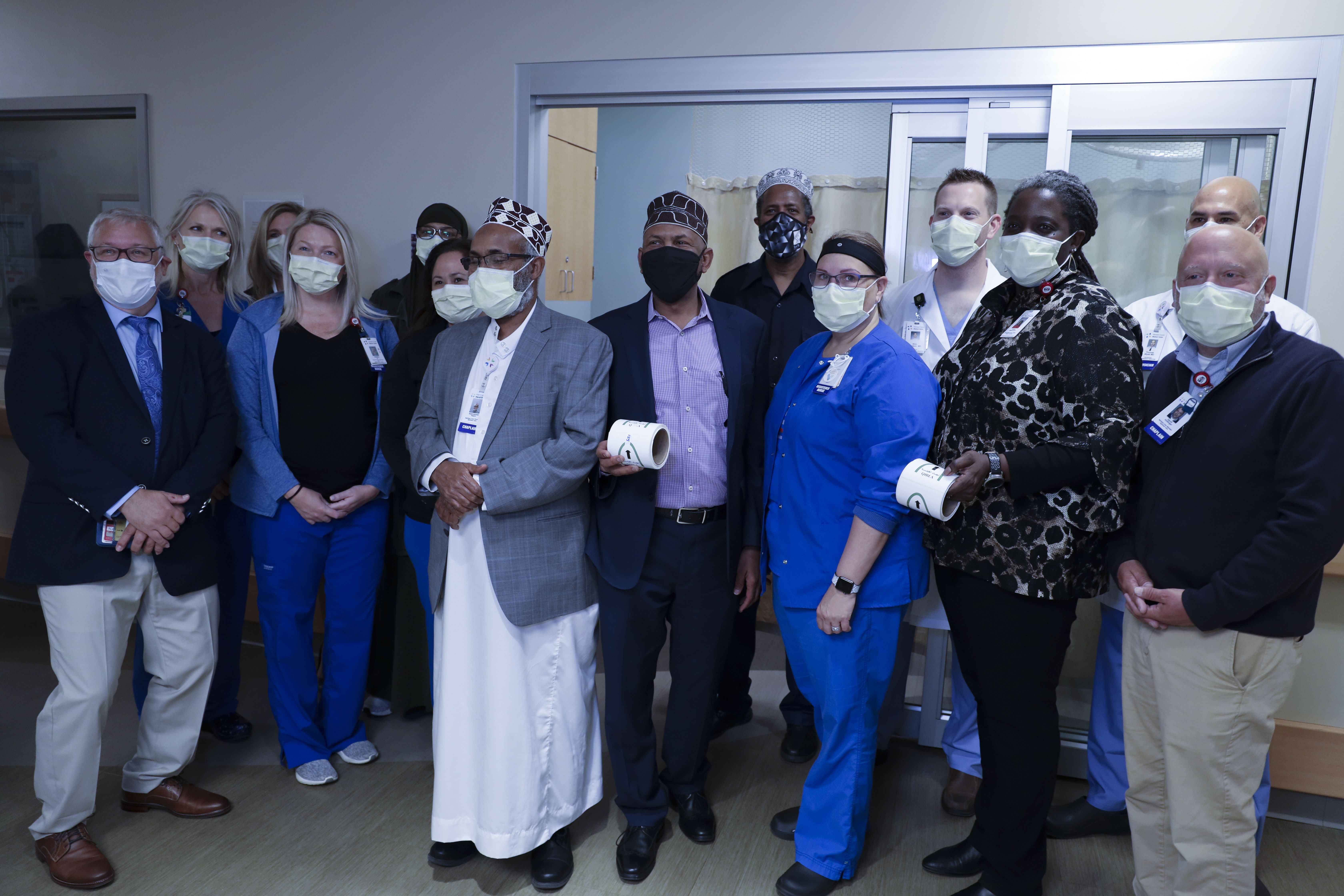 Khamiis, April,, 08, 2021 (HOL) - Waxaa Gudaha Cisbitaalka HCMC qabta Gargaarka Dagdaga ah isagu yimi Madaxda Cisbitaalka ,Dhaqaatiirta & Qaar ka mida Culumadda Minnesota , waxayna maanta daahfurayaan mashruuc qololka Cisbitaalka loogu dhajinayo waraaqo tilmaamayo dhanka qibladda salaada, waana markii ugu horeeysay ee cisbitaal ku yaal gobolka Minnesota & Maraykanka guudba uu sidaa sameeyey.