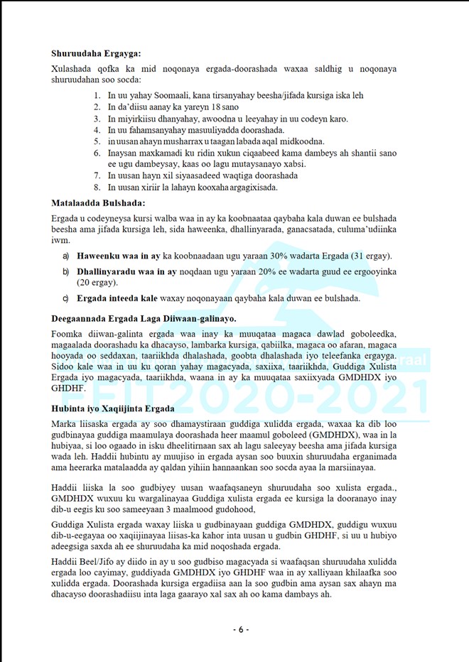 Talaado , Agoosto,17, 2021 (HOL) - Guddiga hirgalinta doorashooyinka Soomaaliya ayaa maanta soo saaray hab-raaca lagu maamulayo doorashooyinka aqalka hoose ama golaha shacabka ee dhicidoonta horraanta bisha 9-aad.