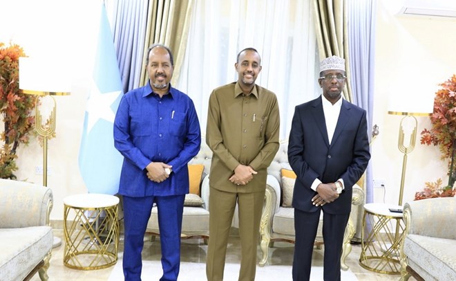 Isniin, Agoosto, 9, 2021 (HOL) - Raysal wasaaraha Xukuumadda Fedaraalka Soomaaliya Maxamed Xuseen Rooble ayaa kulan kala qaatay hoygiisa madaxweynayaashii hore ee dalka Xasan Sheekh Maxamuud iyo Sheekh Shariif Sheekh Axmed.