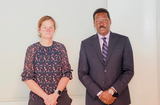 Khamiis, December, 30, 2021 (HOL) - Madaxweynaha maamulka Galmudug Axmed Cabdikaariye Qoorqoor ayaa kulan la qaatay danjiraha UK ee Soomaaliya, Kati Foster.