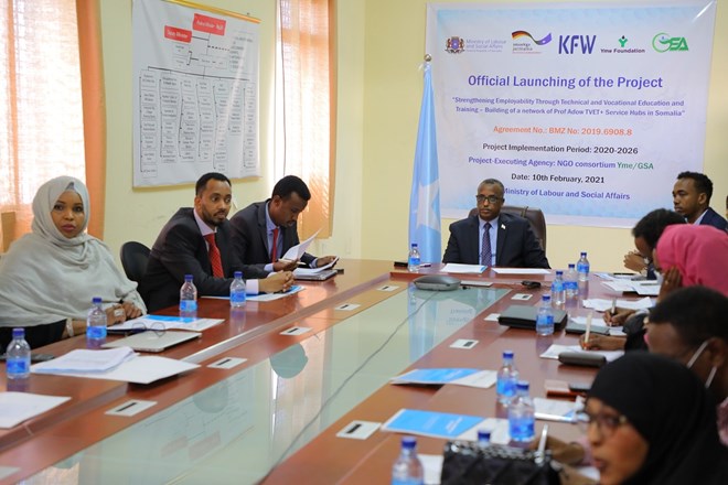 Arbaco,Feberaayo,10,2021 (HOL) Wasiirka Shaqada iyo Arrimaha Bulshada Xukuumadda Federaalka Soomaaliya, Mudane Duraan Axmed Faarax ayaa maanta daahfuray mashruuca ballaaran ee Farsamada,Xirfadaha iyo Tababbarada ee TVET+ oo markii u horreysay dalka laga hirgelinayo tobanaan sano ka dib.
