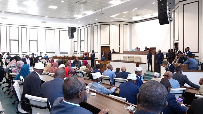 Sabti, Feberaayo, 06, 2021 (HOL) - Shirka Baarlamaanka Soomaaliya oo goor dhaw ka furmay xarunta Villa Hargeysa ayaa lagu waramayaa in laga saaray xidlhibaanadii ka socday Aqalka sare oo lagu wargaliyay in kulanka uu quseeyo oo kaliya Golaha Shacabka.