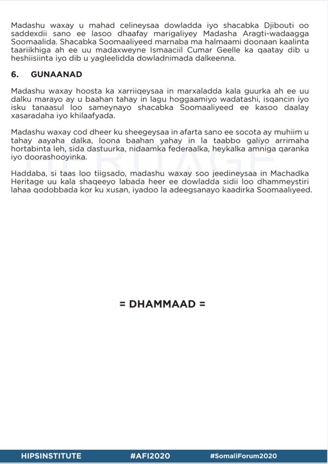 Sabti Janaayo, 02, 2021 (HOL) - War-Murtiyeedkii ayaa lagasoo saaray Madasha Aragti wadaagga Soomaalida ee Heritage, kaas oo ay ka qayb galeen Madaxda Dowladda Federaalka, Madaxda Dowlad Goboleedyada, Qaar ka mid ah xubno la tirsan Midowga Musharraxiinta Madaxweynayaasha Soomaaliya, Xildhibaano, Siyaasiyiin hore iyo qaybaha kala duwan ee bulshada.