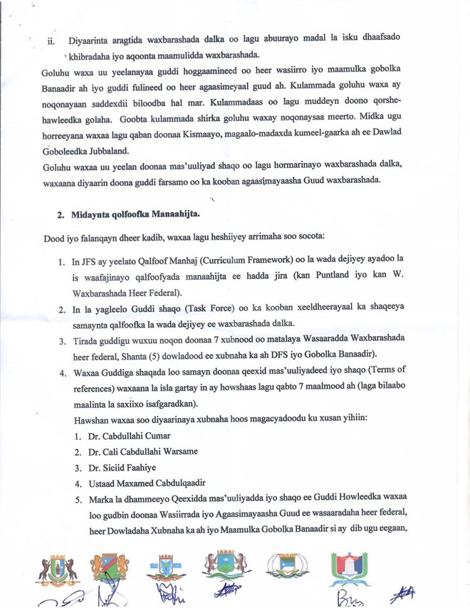 newsinsideShirkaan oo socday muddo labo maalin ah ayay dhinacyadu ka gaareen is afgarad ku saabsan hanaanka loo maamulayo waxbarshadda, Manhajka iyo mideynta Imtixaanaadka dalka.