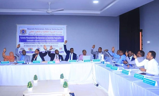 Khamiis, Luulyo, 15, 2021 (HOL) - Shir ay isugu yimaadeen Wasaaradda Waxbarashadda Soomaaliya, Wasaaraddaha Waxbarshashadda dowlad goboleedyada iyo Maamulka Gobolka Banaadir, ayaa lagu soo geba-gabeeyay Magaaladda Garowe Caasimadda Puntland.