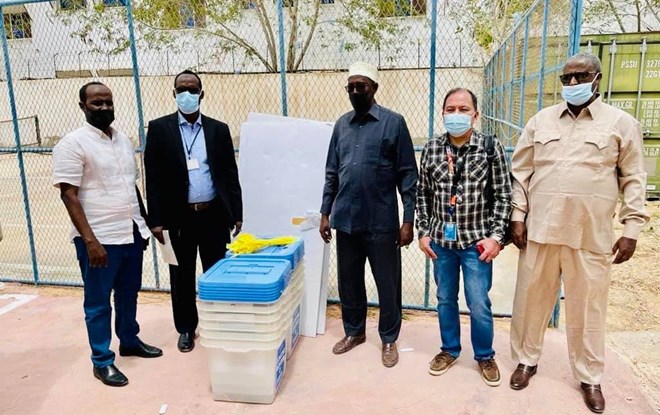 Arbaco, Luulyo, 21, 2021 (HOL) - Guddiga hirgalinta doorashooyinka heer Dowlad Goboleed Puntland, ayaa maanta qalab ay kamid yihiin sanaadiiqda codbixinta kala wareegay xafiiska UNSOM ee Garowe.