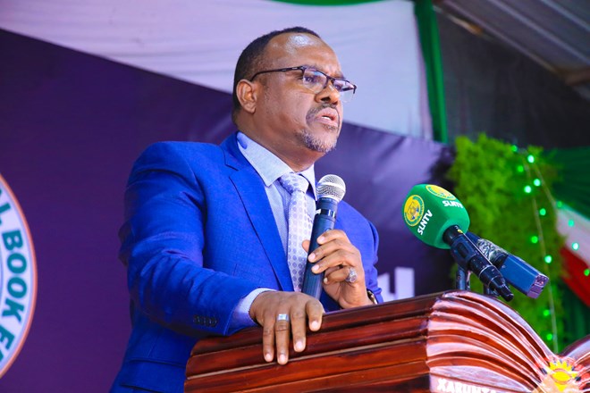 "Waxa sharaf inoo ah in dadku bilaabeen in ay wax qoraan, oo bugaag la qoray, taasi oo ah horumar aynu ku talaabsanay, waxa kale oo sharaf inoo ah in aynu buugaagta laftooda saxno, oo aynu eegno in ay yihiin kuwo bulshada isku soo dhawaynaya oo wax usoo kordhinaya" ayuu yidhi.