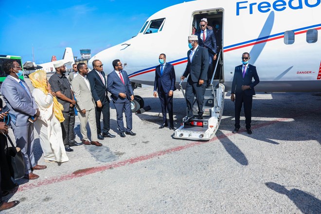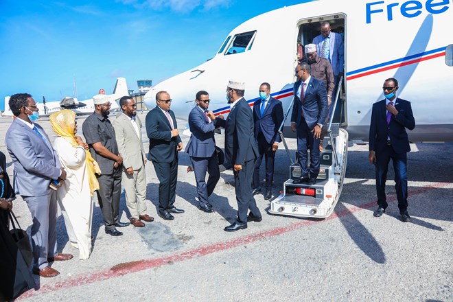 Sabti, Juun, 26, 2021, (HOL) - Madaxweynaha maamul goboleedka Jubbaland Axmed Maxamed Islaam iyo wafdi uu hoggaaminaayo ayaa goordhaw soo gaaray magaalada Muqdisho.