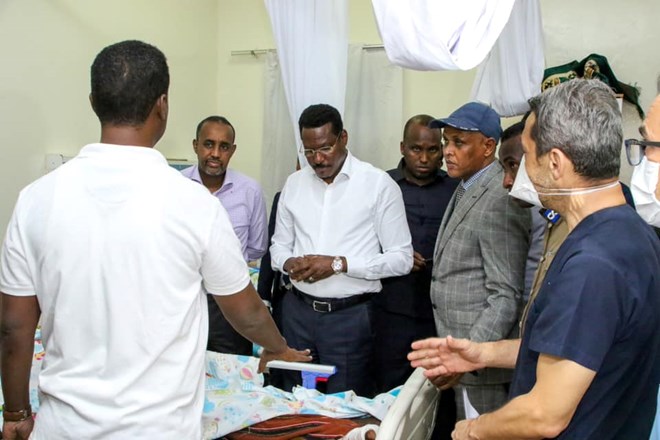 Isniin, Juun, 28, 2021 (HOL) - Raysal wasaaraha Soomaaliya Maxamed Xuseen Rooble iyo madaxweynaha maamul goboleedka Galmudug Axmed Cabdi Kaariye Qoorqoor ayaa si wadajir ah u booqday dadkii shalay ku dhaawacmay dagaalkii ka dhacay deegaanka Wisil ee gobolka Mudug.