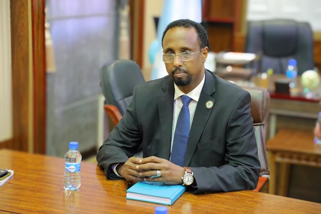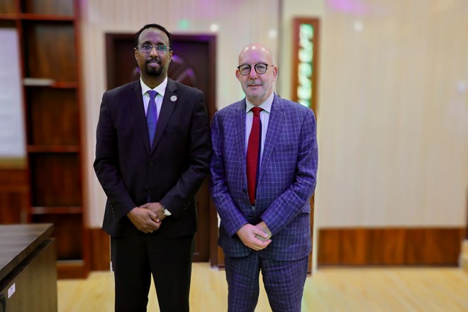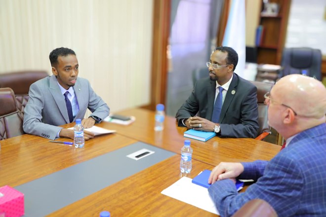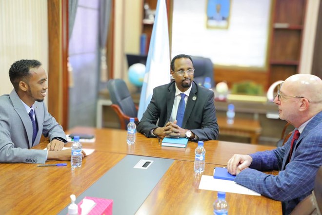 Axad, Juun, 6, 2021 (HOL) - Wasiirka Shaqada iyo Arrimaha Bulshada Xukuumadda Federaalka Soomaaliya, Mudane Cabdiwahaab Ugaas Xuseen Ugaas Khaliif ayaa maanta xafiiskiisa ku qaabbilay Madaxa howlgalka Soomaaliya ee hay’adda Socdaalka adduunka ee IOM, Richard Danziger.