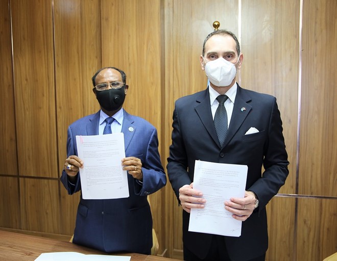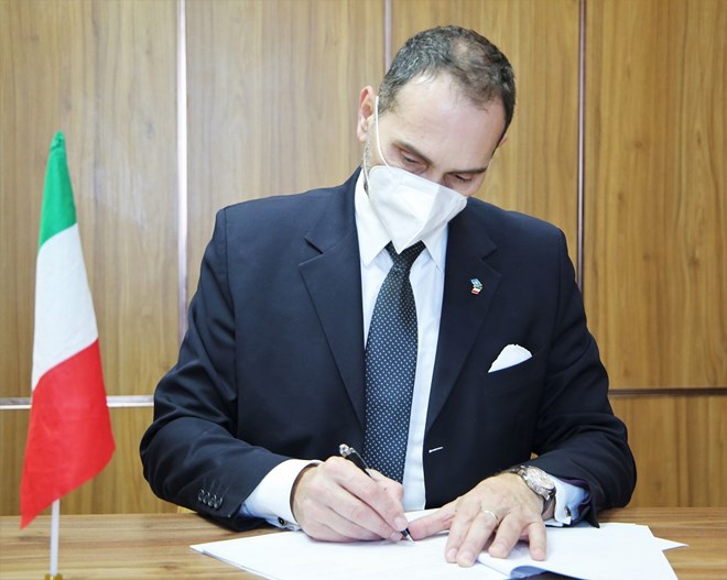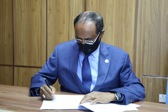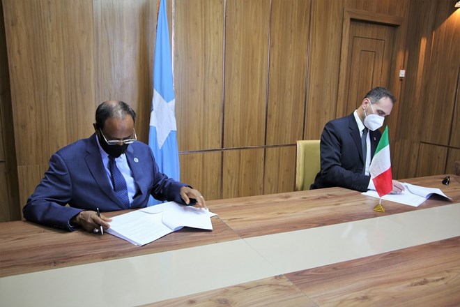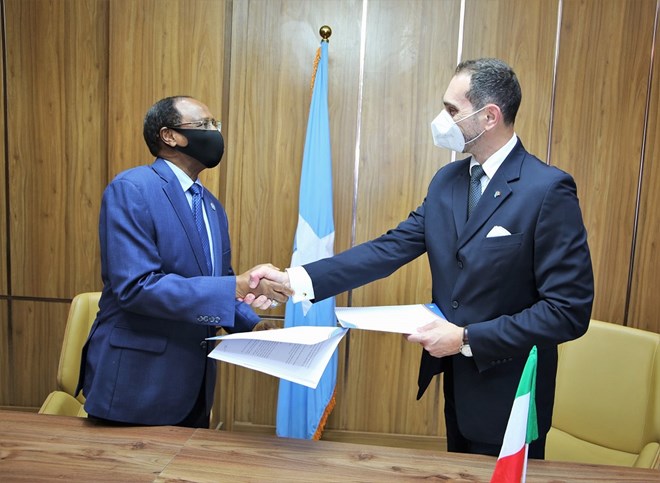 Khamiis, Maarso, 11, 2021 (HOL) - Wasiirka Maaliyadda Soomaaliya Dr. Cabdiraxmaan Ducaale Beyle ayaa maanta maagalada Muqdisho kula saxiixday safiirka dowladda Talyaaniga ee Soomaaliya heshiis ku saabsan deyn cafinta Soomaaliya.