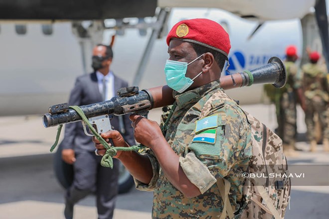 Waa markii ugu horaysay oo madaxweyne dowlad goboleed uu Muqdisho kala dego ciidan sidaas oo kale u hubaysan.