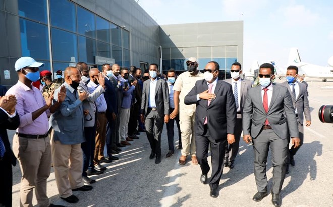 Sabti, Maarso, 13, 2021 (HOL) - Madaxweynaha dowlad gobolleedka Puntland Saciid Cabdullaahi Deni iyo wafdi uu horkacyo ayaa goor dhaw ka degay garoonka diyaaradaha magaalada Muqdisho.