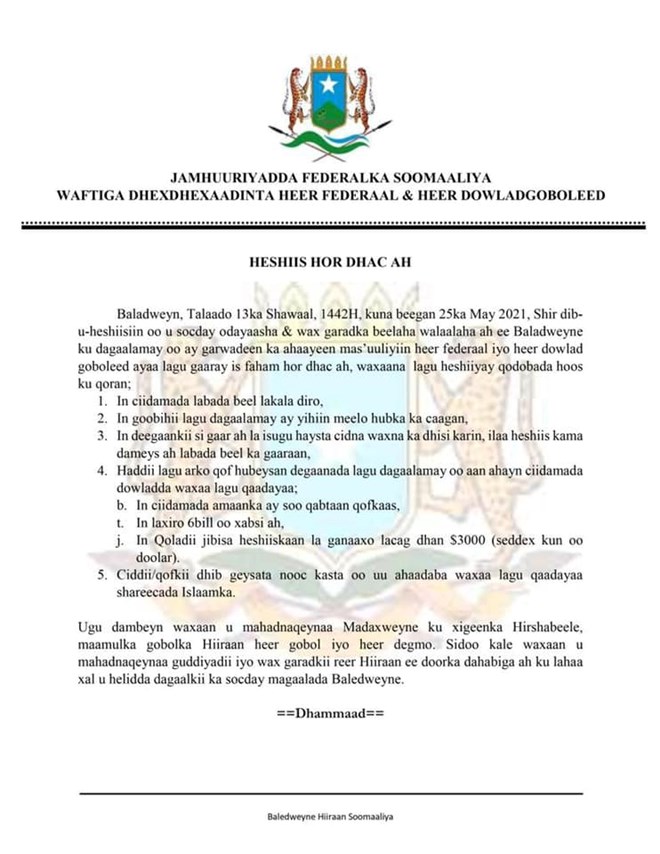 Talaado May, 25, 2021 ( HOL ) - Masuuliyiin kala duwan oo isugu jira wasiiro, Xildhibaano, Sanatero, iyo maamulka gobolka Hiraan ayaa ku guuleystay maanta in la kala qaado Meleshiyaad ciidan beeleed oo mudo bil ku dhaw ku dagaalamayay duleedka Waqooyi Galbeed ee magaalada Baledweyne.