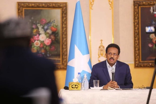 Talaado, May, 04, 2021 (HOL) - Madaxweynaha muddo xileedkiisu dhamaaday Maxamed Cabdullaahi Farmaajo ayaa xalay xarunta madaxtooyada Soomaaliya kula kulmay wakiillo ka kala socday warbaahinta Soomaaliyeed.