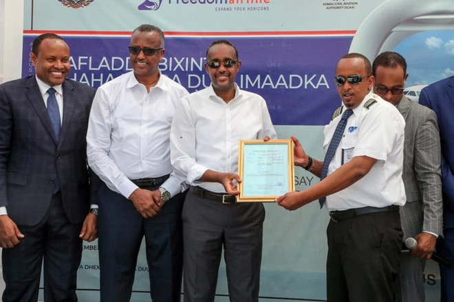 newsinsideRa’iisul Wasaare Maxamed Rooble ayaa shahaadooyinka guddoonsiiyay Duuliyeyaal iyo Diyaarada Freedom Air oo ah diyaarad maxalli ah oo dalka muddo ka shaqeynaysay.