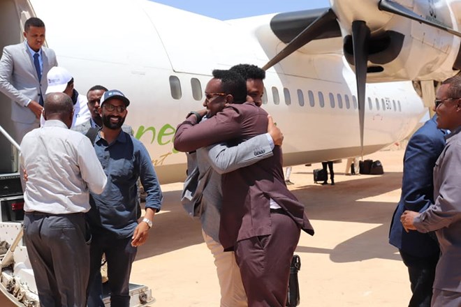 newsinsideGuddoomiyaha maamulka gobolka Hiiraan Cali Jeyte Cismaan iyo masuuliyiin kale oo ka tirsan maamulka gobolka iyo degmada Baledweyne ayaa wafdiga kusoo dhaweeyay garoonka Ugaas Khaliif.