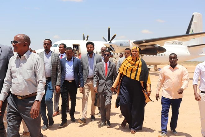 Axad, October, 10, 2021 (HOL) - Waxaa maanta magaalada Baledweyne soo gaaray wafdi uu hoggaaminaayo guddoomiye ku xigeenka guddiga doorashooyinka heer Fedaraal Mowliid Mataan, kuwaas oo soo dhaweyn loogu sameeyay garoonka diyaaradaha Ugaas Khaliif ee magaalada Baledweyne.
