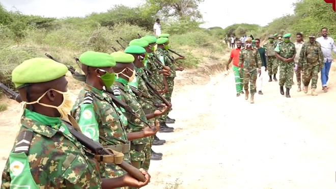 Jimco, October, 15, 2021 (HOL) - Taliyaha qeybta 27-aad ee ciidamada Xooga dalka Soomaaliyeed Jenaraal Maxamed Axmed Tareedishe oo howlo kormeer ah ku tagay qaar ka mid ah fariimaha ciidamada Militariga Soomaaliya ay ku leeyihiin gobolka Sh/dhexe, gaar ahaan deegaanka Xaaji Cali iyo degmada Warsheeq ayaa kula dardaarmay ciidanka in laba jibaaraan howlagalada ka dhan ah Al-shabaab.