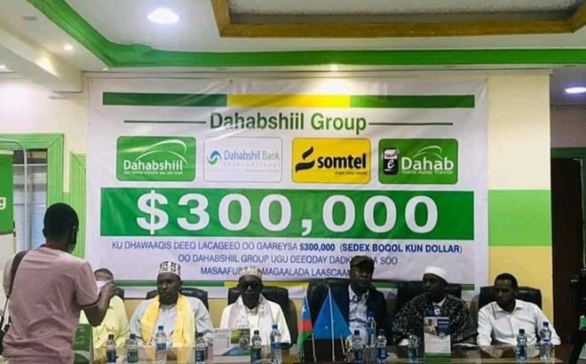 Sabti, October, 16, 2021 (HOL) - Shirkadda adeegga lacagaha ee Dahabshil Group ayaa lacag dhan Saddex boqol oo Kun oo dollar ugu deeqday qoysaskii laga soo masaafuriyey magaalada Laascaanood, kuwaas oo haatan ku sugan magaalada Baydhabo.