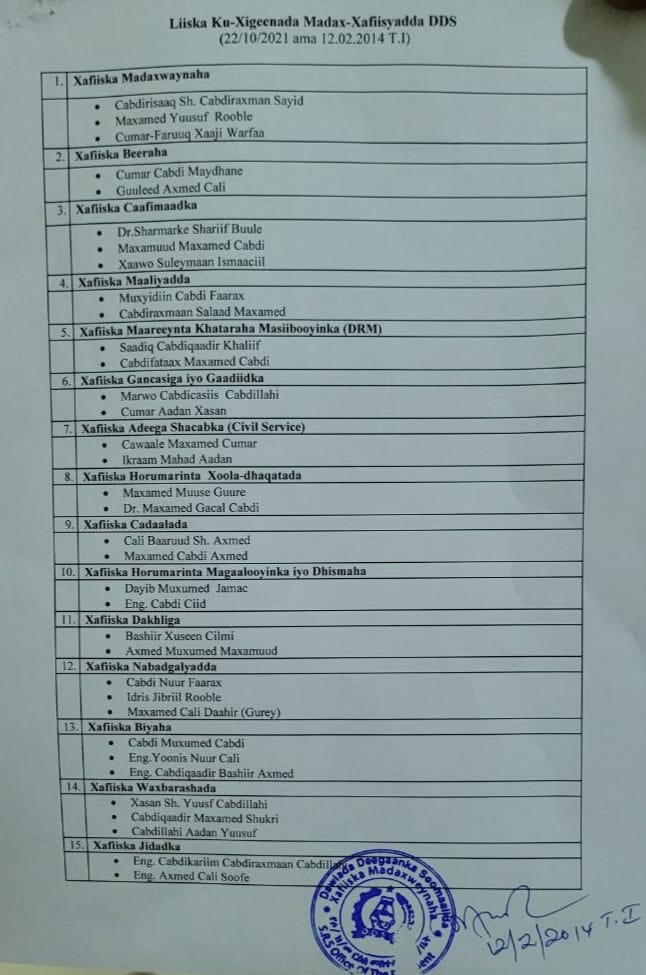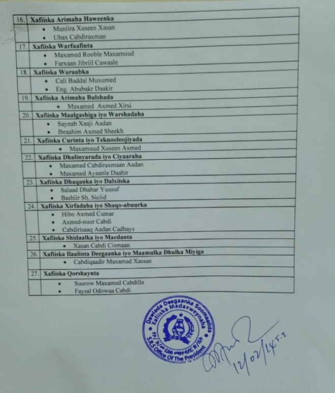 Hoos ka aqriso Liiska wasiir ku xigeennada xafiisyada dowlad degaanka Soomaalida ee la magacaabay:-