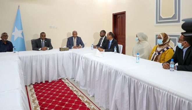 Isniin, September, 13, 2021 (HOL) - Raysal wasaaraha Soomaaliya Maxamed Xuseen Rooble ayaa kulan looga hadlaayay dardargelinta qabashada doorashada Aqalka ee goboladda Waqooyi la qaatay Raysal wasaare ku xigeenkiisa Mahdi Guuleed iyo guddoomiyaha Aqalka sare Cabdi Xaashi.