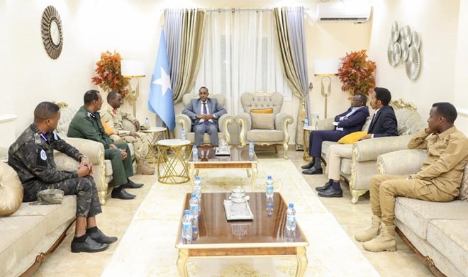 Isniin, September, 6, 2021 (HOL) - Ra’iisul Wasaaraha xukuumada Soomaaliya Maxamed Xuseen Rooble ayaa xafiiska kula kulmay agaasimaha cusub oo uu u magacaabay hay’adda Nabad Sugidda iyo Sirdoonka Qaranka, Sarreeye Guud Bashiir Maxamed Jaamac (Bashiir Goobe).