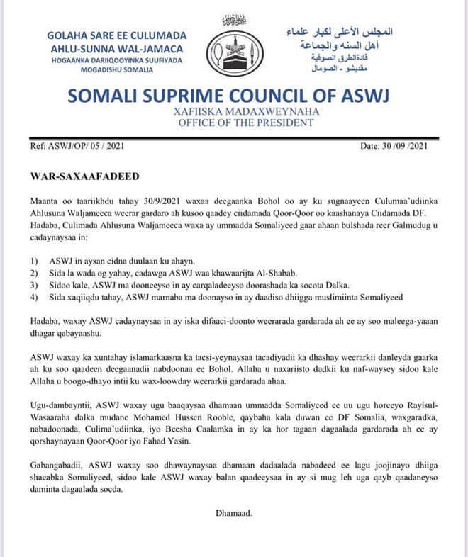 Jimco, October, 1, 2021 (HOL) - Xaalad kacsanaan ah ayaa laga dareemayaa gobolka Galgaduud ee Galmudug, iyadoo ciiddamada Ahlusunna Waljameeca ay isku ballaariyeen qeybo kamid ah gobolka Galgaduud ee bartamaha Soomaaliya.