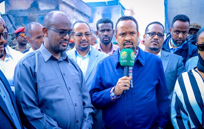 Sabti, April, 2, 2022 (HOL) - Wafti wasiiro ah oo uu hogaaminayo Wasiirka Maaliyada Dowlada Federalka Itoobiya Axmed Shide, ayaa soo gaadhay magaalada Hargaysa, waftiga ayaa Hargaysa u yimid si ay shacabka Somaliland ula qayb sadaan masiibada ka dhalatay dabka halakeeyay suuqa Waaheen.