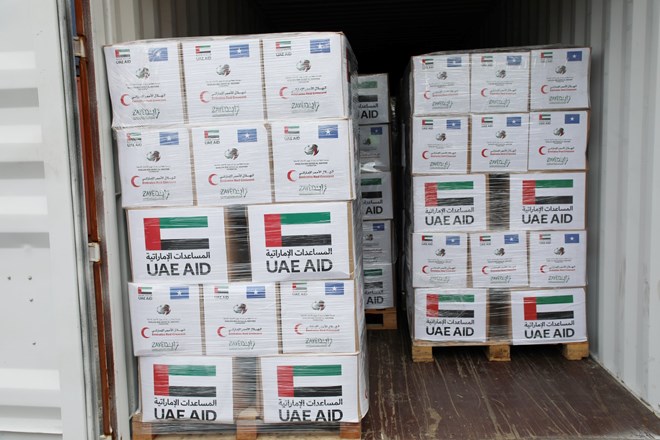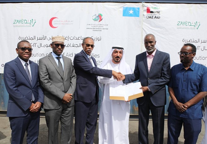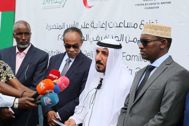 "Waxaan Maanta la wareegnay deeq raashiin ah oo inooga timid dowladda walaalaha nahay ee Imaaraadka Carabta taasoo dhan kun tan oo isugu jirta cunooyin kala duwan oo loogu talo galay dadka abaaraha saameeyeen, waan uga mahadcelinaya garab istaaga dowladda Imaaraadka Carabta ay inoo mujineyso, waxaana ka fileyna deeqo kale oo gargaar ah" ayuu yiri Wasiir Cabdullaahi Axmed Jaamac Ilkajiir.