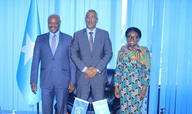 Jimco, Agoosto, 19, 2022 (HOL) - Wasiirka Arrimaha dibadda Soomaaliya, Abshir Cumar Jaamac, ayaa Muqdisho ku qaabilay Ku-xigeenka Ergeyga Qaramada Midoobay u qaabilsan Soomaaliya, Anita Kiki Gbeho, waxayna kawada hadleen doorka Qaramada Midoobay ee dadaallada bini'aadantinimo.
