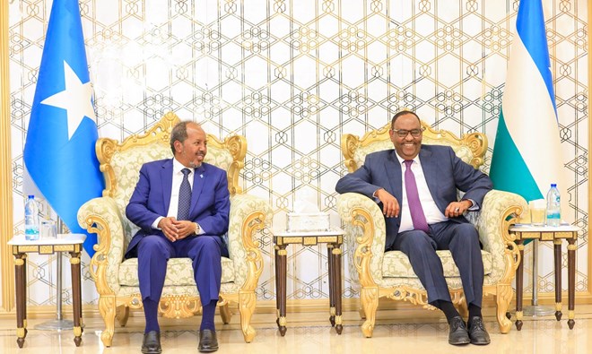 Sabti, Agoosto, 27, 2022 (HOL) - Kulamo xasaasi ah oo albaabada u laaban yihiin ayaa magaalada Garowe uga socday madaxweynaha Soomaaliya Xasan Sheikh Maxamuud iyo madaxweynaha Puntland Siciid Deni.