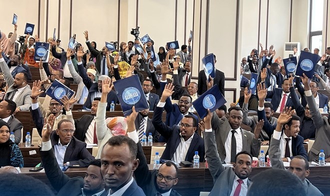 Axad, Agoosto, 7, 2022 (HOL) - Mudanayaasha Baarlamaanka Fedaraalka Soomaaliya ayaa Maanta kulan ay ku yeesheen xarunta Villa Hargeysa ee magaalada Muqdisho ku meel mariyay Xukuumadda cusub ee Raysal wasaare Xamse Cabdi Barre.