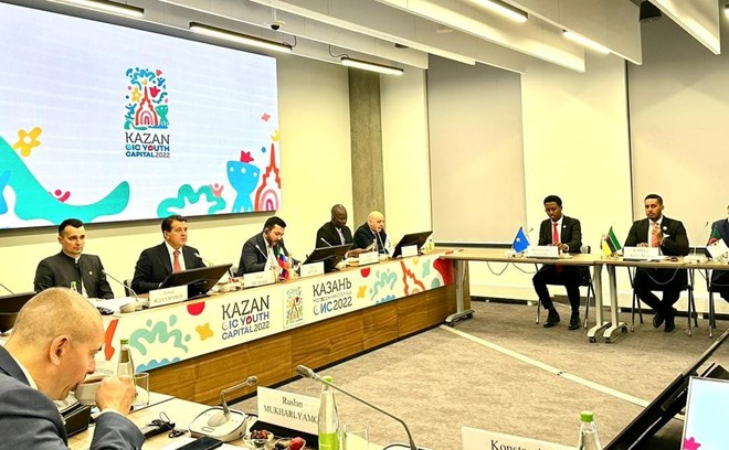 Jimco, December, 16, 2022 (HOL) - Wasiirka Wasaaradda Dhalinyarada iyo Cayaaraha Xukuumadda Soomaaliya Xildhibaan Maxamed Barre Maxamuud iyo wafdi uu hogaaminayo ayaa dalka Ruushka kaga qayb galay shir muhiim ah oo looga hadlayo arrimaha Dhallinyarada dunida Islaamka, waxaana marti gelisay shirkaan dowladda goonida isu maamusha ee Tatarstan oo xubin ka ah midowga Fedaraalka Ruushka.