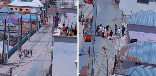 Muqaal si weyn loogu dhex faafiyay baraha bulshada ayaa muujinaayay gabadha oo kasoo boodeysa dabaqa, islamarkaana kusoo dhul dhaceysa dirin ay dhulka la taagnayeen dhalinyaro dhowr ah oo dooneysay iney ku badbaadshaan, hayeshee waxaa la xaqiijiyay in gabadha ay soo gaareen dhaawacyo jajab u badan oo dhanka lugaha iyo gacmaha ka gaaray.