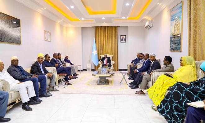 Jimco, December, 30, 2022 (HOL) - Guddoomiyaha Golaha Shacabka Baarlamaanka Fedaraalka Soomaaliya Sheekh Aadan Maxamed Nuur Madoobe ayaa xalay mar kale kulan kula qaatay hoyga uu ka dagan yahay magaalada Muqdisho siyaasiyiinta ku midoobay Midowga Musharraxiinta iyo Madasha Badbaadada maamulka Koonfur Galbeed Soomaaliya.