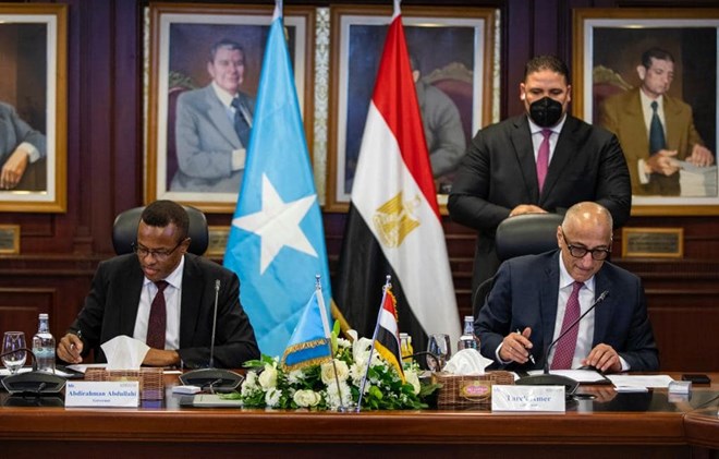 Khamiis, Febraayo, 24, 2022 (HOL) - Guddoomiyaha Bankiga dhexe ee Soomaaliya Cabdiraxmaan Maxamed Cabdullahi oo uu wehliyo Safiirka Soomaaliya ee Masar ahna wakiilka joogtadda ah ee Ururka Jaamacadda Carabta Danjire Ilyaas Sheikh Cumar ayaa ka qeyb galay munaasibad heshiis is-af-garad (MoU) ku kala saxiixdeen Bankiga Dhexe ee Soomaalya iyo Masar.