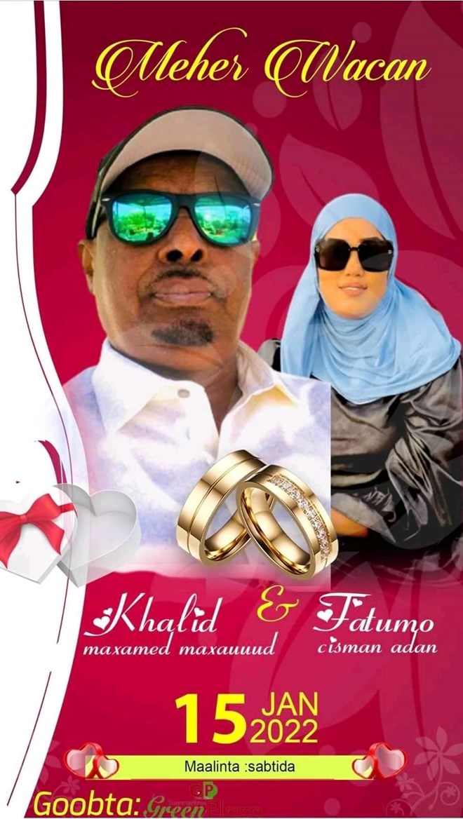 Sabti, Janaayo, 15, 2021 (HOL) – Faadumo Cismaan Aadan oo saaka loo balan Sanaa in loo meheriyo Khaalid Maxamed Maxamuud oo ka yimid dalka Maraykanka, ayaa isbitaal ku yaala magaalada Hargaysa ku geeriyootay sacado yar ka hor wakhtigii loo balan sanaa in meherkeedu dhaco.