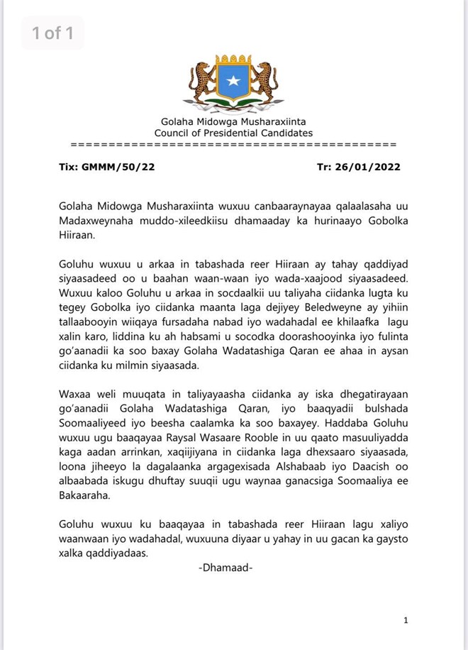 Hoos ka akhriso War saxafadeedka Golaha Musharaxiinta Madaxweynaha.