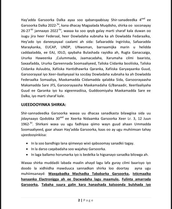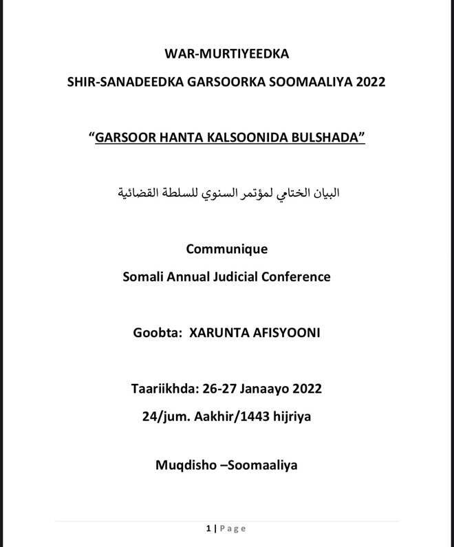Jimco, Janaayo, 28, 2022 (HOL) - Shirka arrimaha garsoorka dalka ayaa lagusoo gabagabeeyay magaalada Muqdisho, iyadoo lagasoo saaray war murtiyeed lagu sheegay in garsoorka dalku uu u baahan yahay wax ka beddel weyn.