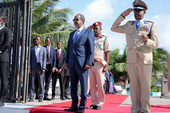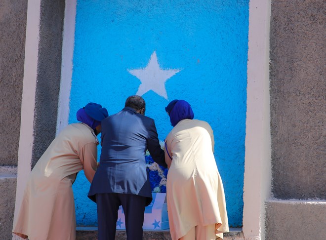 Jimco, Luulyo, 1, 2022 (HOL) - Madaxweynaha dowladda Federaalka Soomaaliya Xasan Sheekh Maxamuud oo xusaya sanad guurada 62-aad ee xornimada iyo midnimada dalka ayaa Maanta ubax dhigey taalada Daljirka Dahsoon ee magaalada Muqdisho.