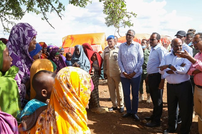 Arbaco, Juun, 1, 2022 (HOL) - Madaxweynaha cusub ee Soomaaliya Xasan Sheekh Maxamuud oo ay wehliyaan ergayga gaarka ah ee u qaabilsan ka hortagga abaaraha iyo mas’uuliyiin kale ayaa shalay booqasho ku tagay magaalada Baydhabo.