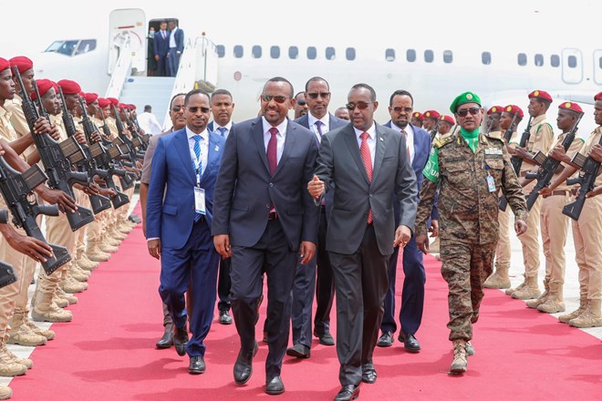 Khamiis, Juun, 9, 2022 (HOL) - Madaxweynaha Kenya, uhuru Kenyatta, Raysal wasaaraha Ethiopia, Abiy Ahmed, madaxweynaha Jabuuti, Ismaaciil Cumar Geelle iyo raysal wasaaraha dalka Masar, Mustafa Madbuuli ayaa gaaray Muqdisho si ay uga qeyb galaan caleemo saarka madaxweynaha Soomaaliya Xasan Sheikh Maxamuud.