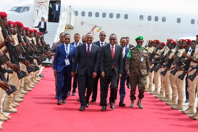Khamiis, Juun, 9, 2022 (HOL) - Wafti uu hoggaaminaayo Ra’iisal Wasaare Abiy Axmed ayaa gaadhay magaalada Muqdisho ee caasimadda Soomaaliya, si ay uga qayb galaan Caleema saarka Madaxwaynaha Soomaaliya Xasan Sheekh Maxamuud.
