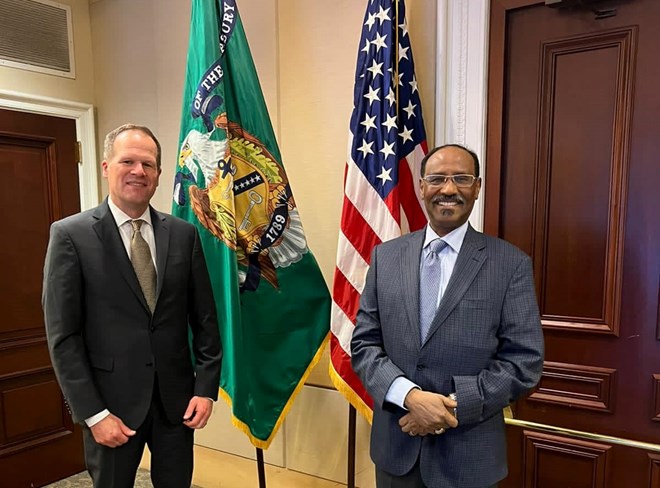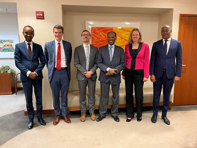 Khamiis, Maarso, 24, 2022 (HOL) - Wasiirka Maaliyadda Xukuumadda Federaalka Soomaaliya Cabdiraxmaan Ducaale Beyle, ayaa magaalada Washington ee dalka Mareykanka kulan kula yeeshay masuuliyiin ka tirsan waaxda maaliyadda Mareykanka, waaxda arrimaha dibaddda iyo hay’adda gargaarka Mareykanka ee USAID.